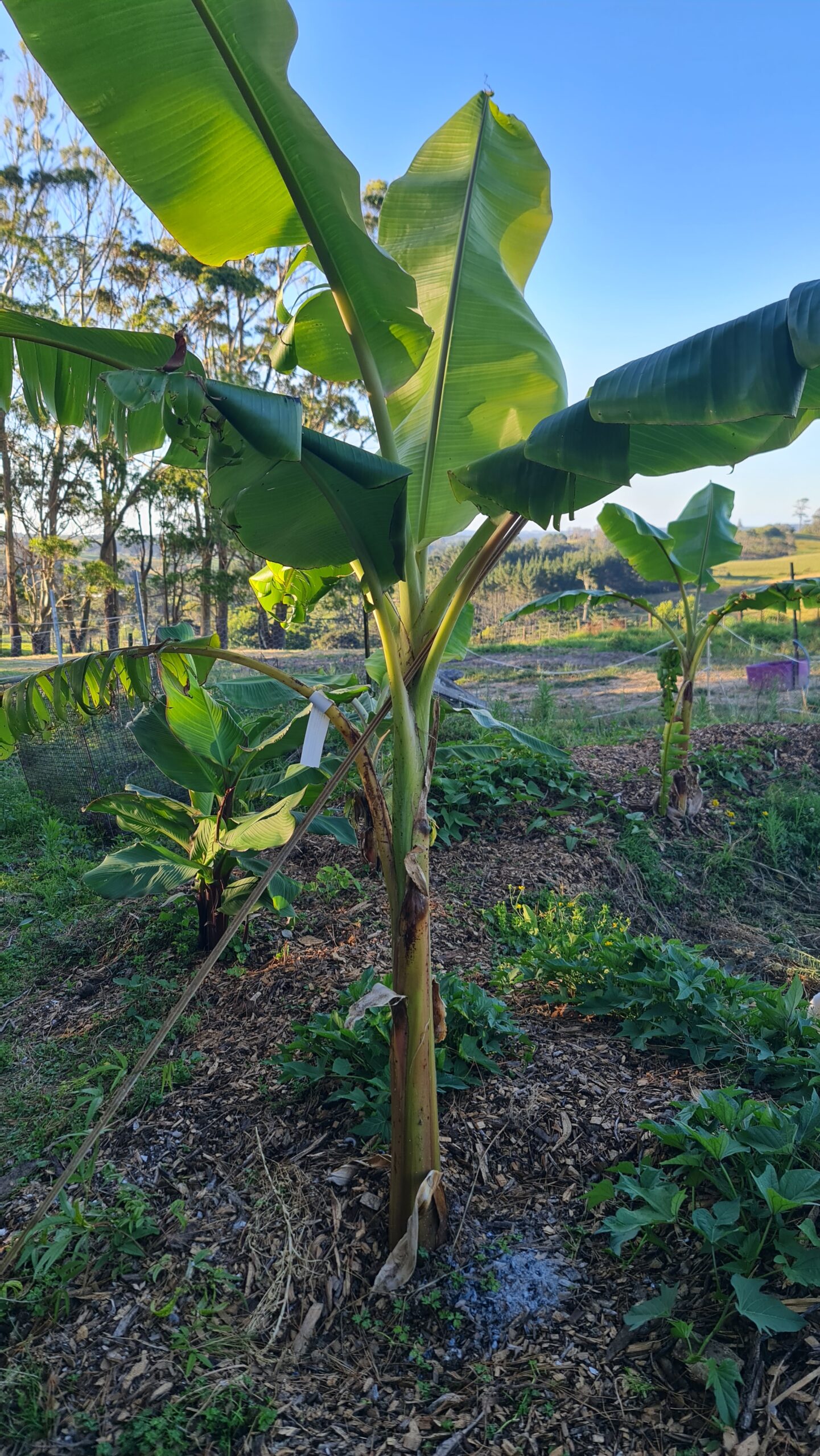 We’ve planted various varieties of bananas, that are suitable for growing in West Auckland; cold hardy and somewhat wind tolerant. And chosen a warm spot that receives 6+ hours of sunlight through the day.